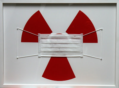 « Masque universellement simple, compréhensible mais de clefs de lectures d’origine/sous entendues de culture japonaise : clin d’oeil/inspiration aux masque de théâtre traditionnel japonais sur déformation/réinterpretation du logo nucléaire » Seamus Farrell