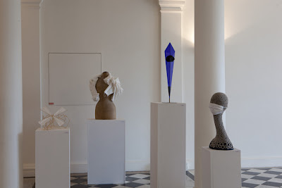 « Le masque de papier est réalisé grâce à un subtil travail de pliage digne d’une tradition d’origami. Sa matière très douce et cotonneuse caresse l’oeil qui l’observe.