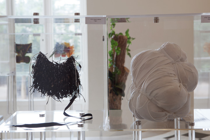 Des poignets de chemisiers en coton blanc recouvrent le non tissé, le détail est brodé, une fleur d’émail est accrochée ». Maroussia Rebecq/ Andrea Crews
