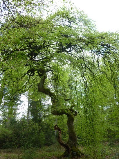 Beauté d’une architecture tourmentée et fantasmagorique: Étranges arbres de la famille des Hêtres, dits Hêtres tortillards, car les branches sont torsadées, et certaines se « marient » à d’autres branches.